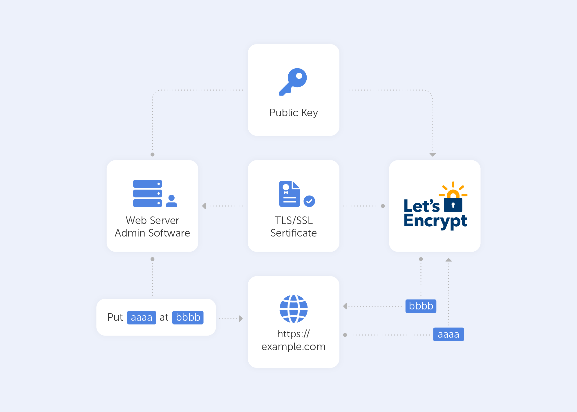 ‘Let's Encrypt’ verifies the ownership of your domain before issuing a certificate. On your server, the Let's Encrypt client creates a temporary file (a token) with the required information. The Let's Encrypt validation server then sends an HTTP request to get the file and validates the token, ensuring that your domain's DNS record resolves to the ‘Let's Encrypt’ client-server.