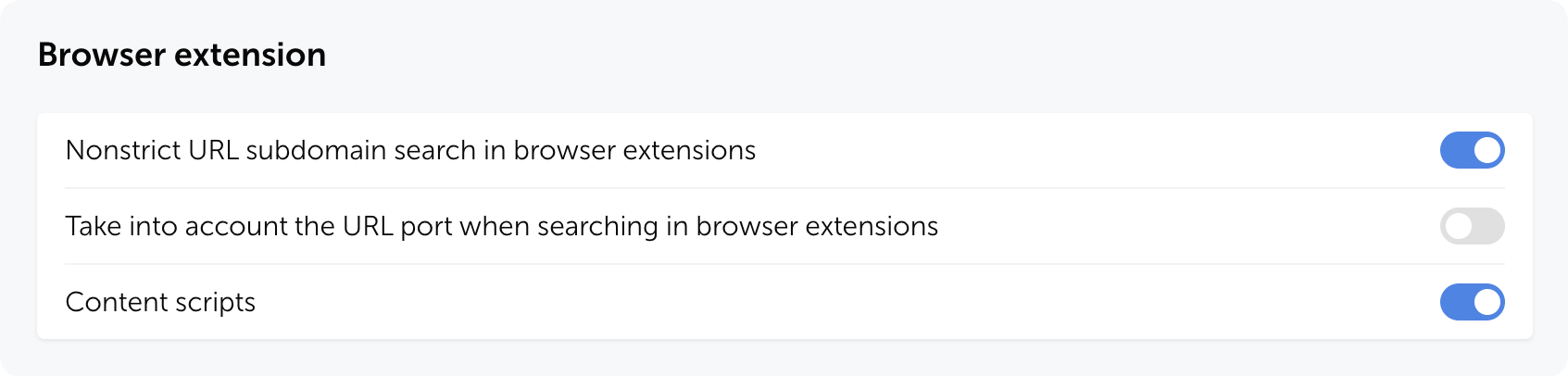 You can disable pop-up autofill suggestions by adjusting the Content scripts setting in the Browser extension section of the system settings (available starting from Passwork 7.1.2).