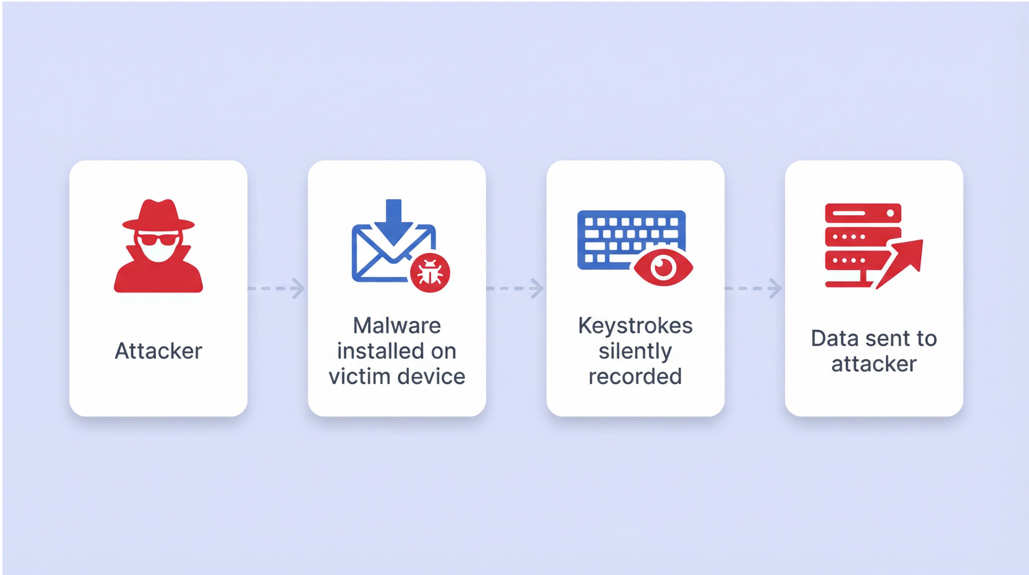 While traditional keyloggers simply recorded keystrokes, modern attackers utilize highly sophisticated infostealer malware. Families like Lumma, Acreed, and StealC V2 operate silently, extracting saved browser passwords, active session cookies, cryptocurrency wallets, and MFA tokens in a single sweep.
