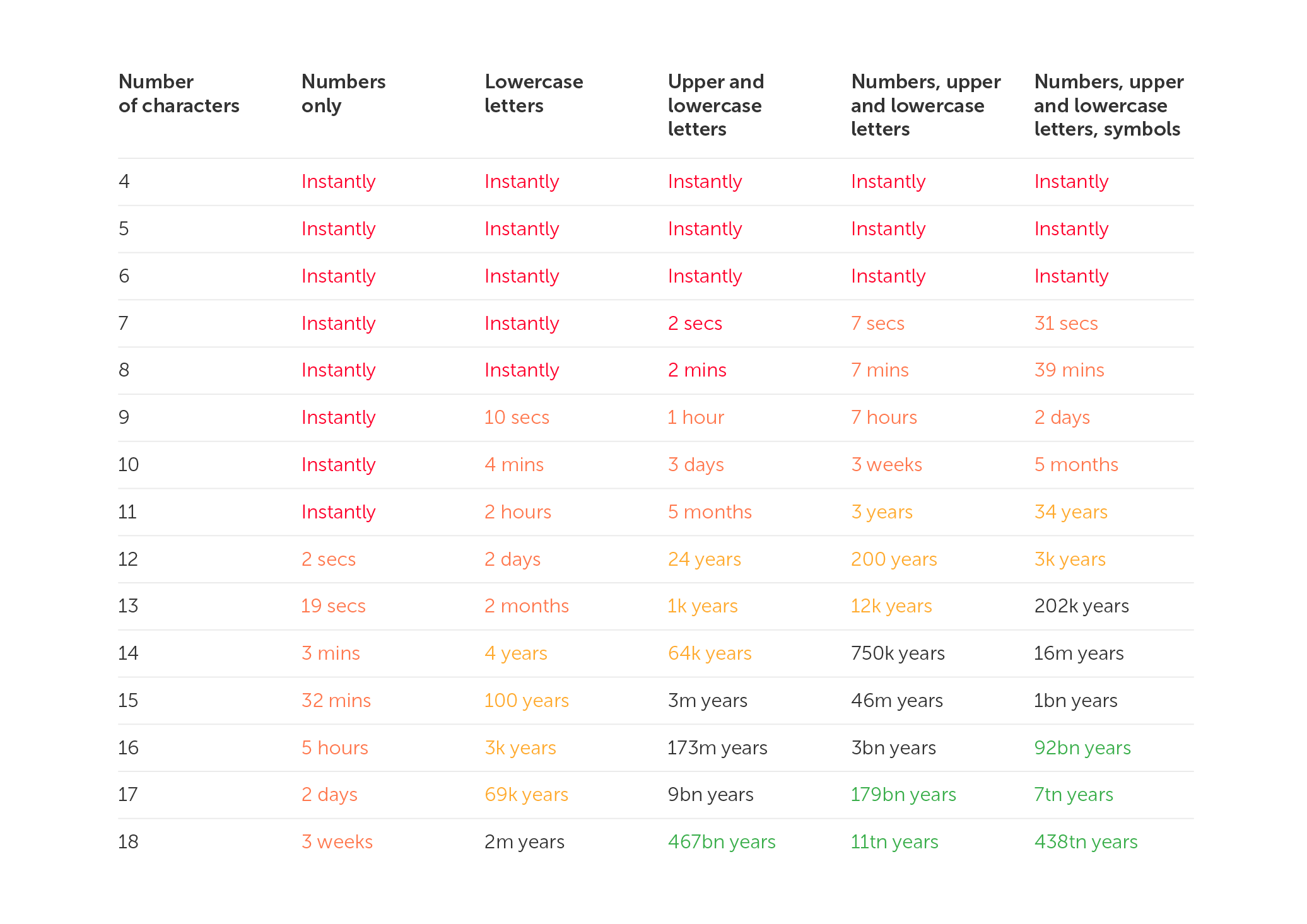 We are aware that adding length and complexity to passwords is the only method to increase their strength and, consequently, the safety of our accounts. The time it typically takes an attacker to break a password in 2022 using a powerful commercial computer is displayed below. This chart, which has been analysed and periodically updated since 2018, shows how quickly passwords can be broken on current machines. This pattern indicates that, despite our best efforts to create passwords that are longer and more complicated, passwords alone are no longer sufficient to meet the required internet security standards.