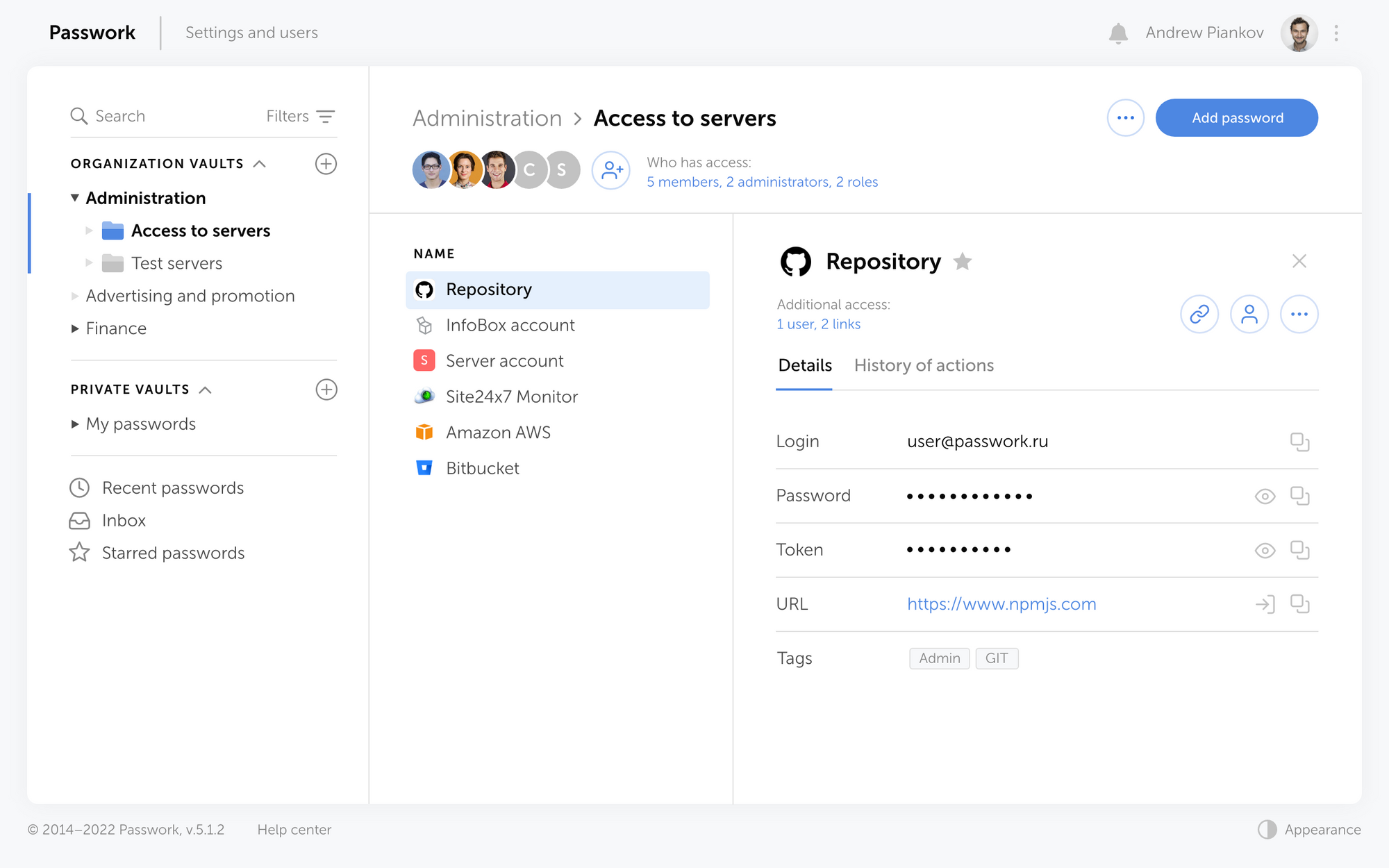Passwork provides an advantage of effective teamwork with corporate passwords in a totally safe environment