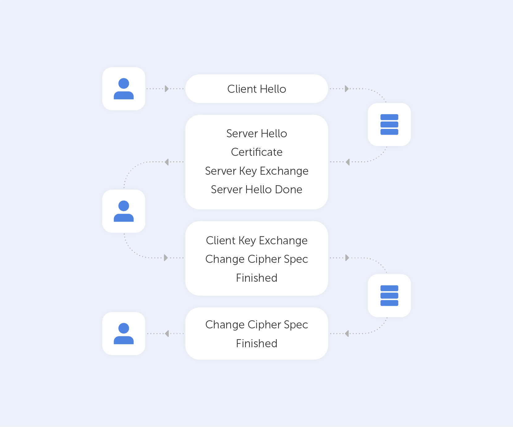 The Server will reply in the same way – with a Change Cipher Spec and a Finished message.